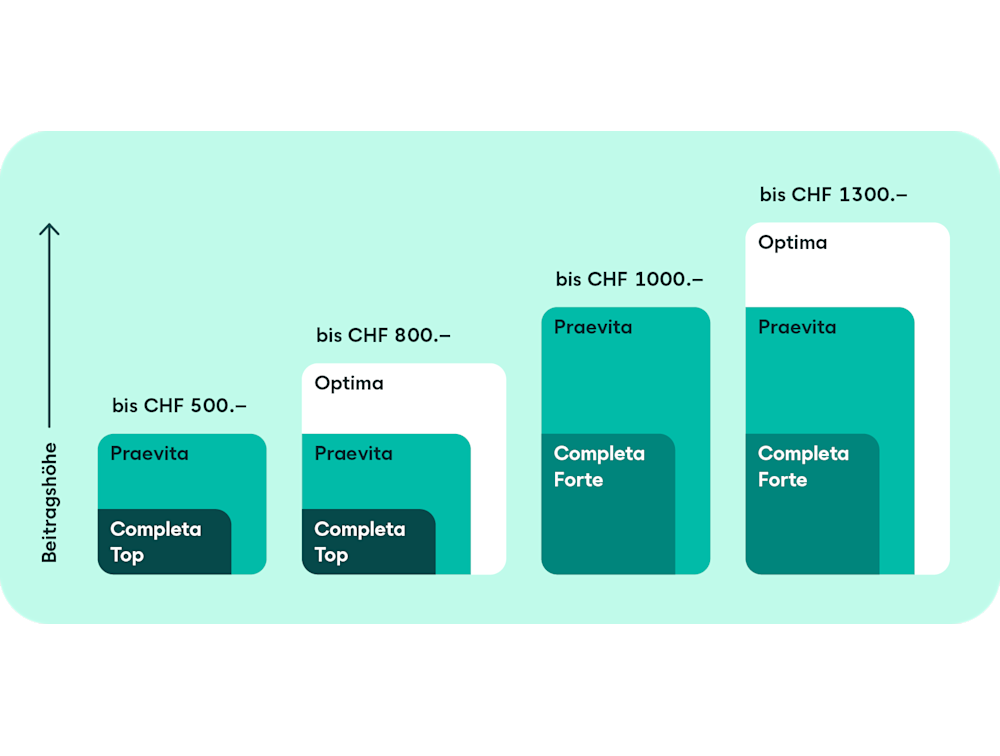 Completa Forte: 90% der Kosten bis max. CHF 500.–, pro Vorsorgeart bis CHF 300.–