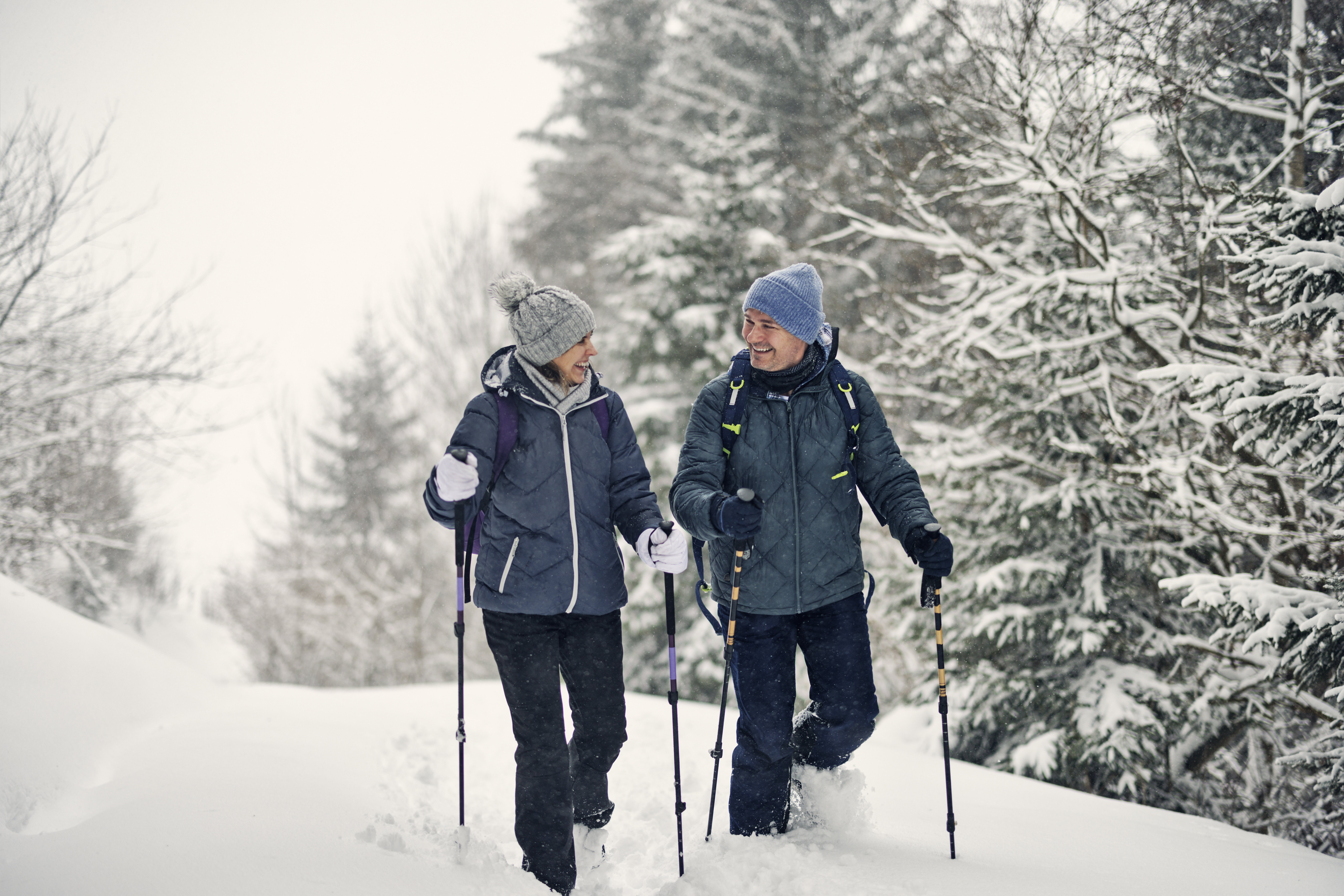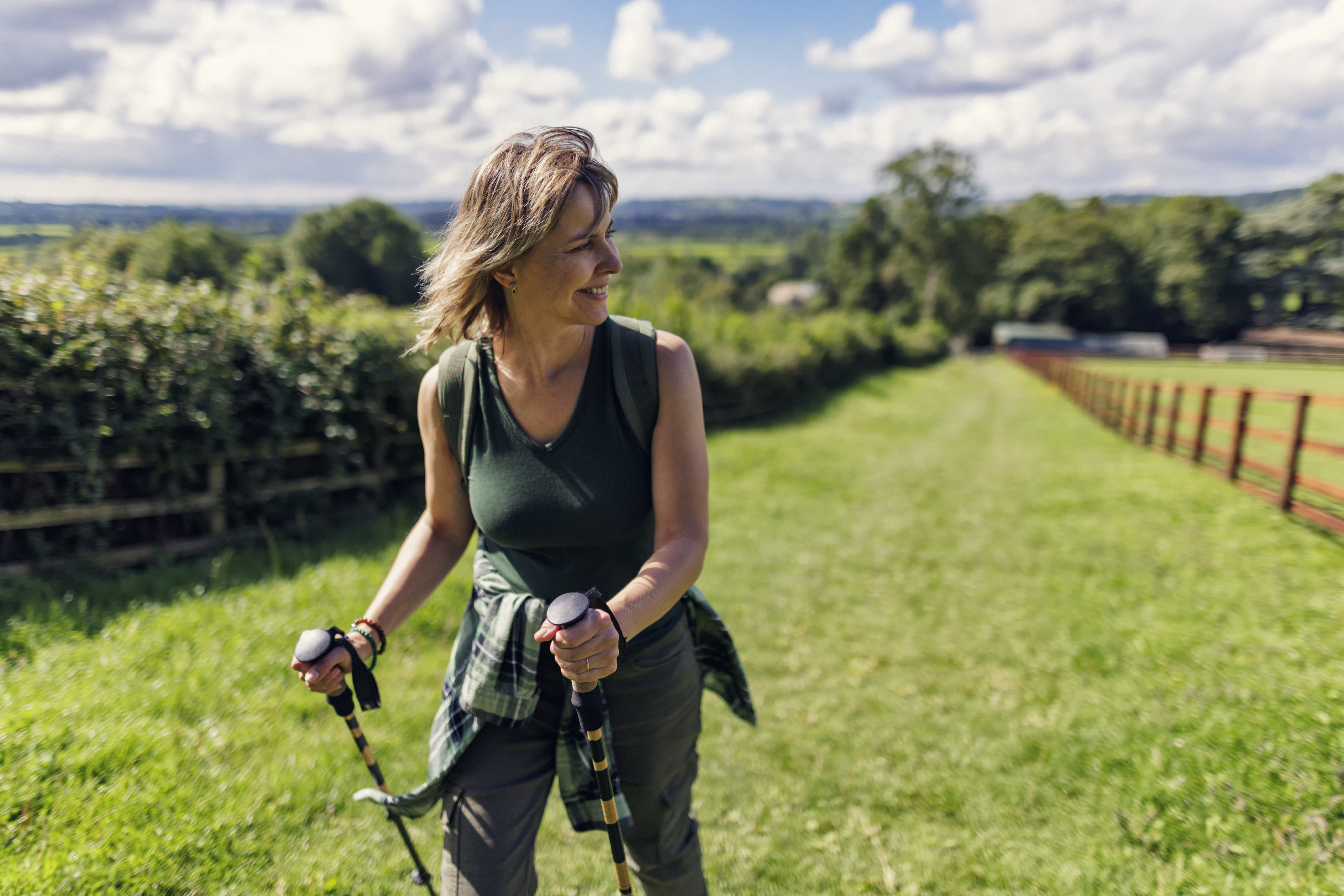 Der Antrieb beim Nordic Walking kommt mehrheitlich aus dem Rumpf und durch den rhythmisch, flachen Stockeinsatz. So werden die Muskelpartien in Rücken und Rumpf beansprucht und gestärkt. Durch den Stockeinsatz sind zudem Arme und Oberkörper beteiligt. Der Armschwung intensiviert das Training für Herz, Kreislauf und Muskeln zusätzlich. Das Lauftempo ist optimal, wenn Sie während des Trainings noch mit einer Trainingspartnerin oder einem Trainingspartner reden können. Fällt es schwer sich zu unterhalten, sollte das Tempo gedrosselt werden.